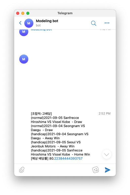 최종 배당률도 80배! 이 조합도 메신저로 받아본다면 이렇겠죠?
