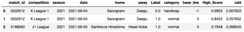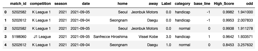 test.columns = ['match_id', 'competition', 'season', 'date', 'home', 'away', 'Label',