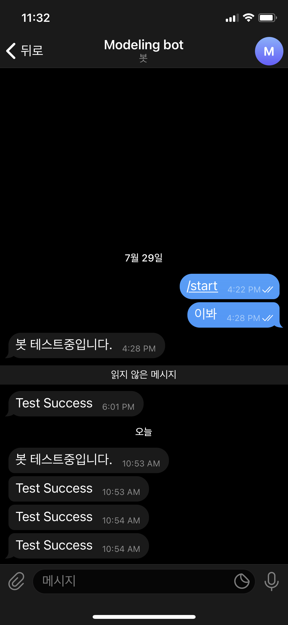 자, 이렇게 스케쥴링이 쉽다는건 알겠는데, 이게 잘 돌아가는지, 확인은 어떻게 하는지! 테스트를 해봐야겠죠? 작업이 주기적으로 잘 돌아간다고 해도, 갑작스럽게 에러가 발생하면 확인할 수 있는 방법도 있어야 하구요. 정말 간단한 코드를 만들어서 스케쥴러가 잘 돌아가는지 확인해보고, 작업이 완료되면 텔레그램으로 메세지가 오도록 하는 텔레그램봇도 설정해봅시다!
